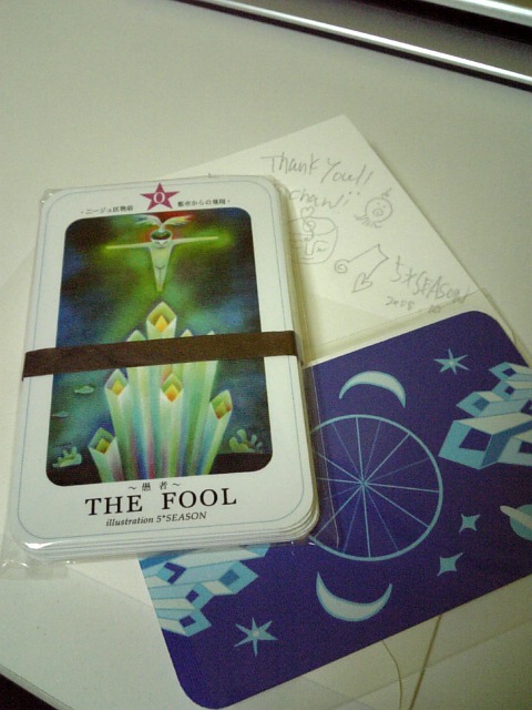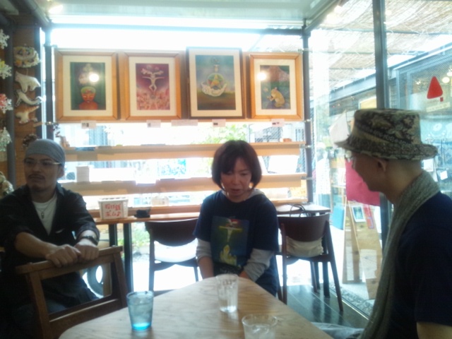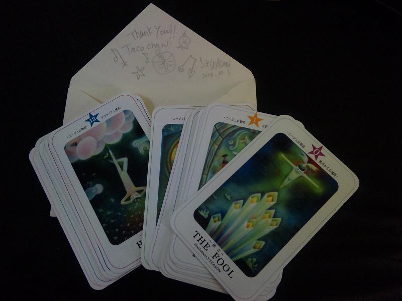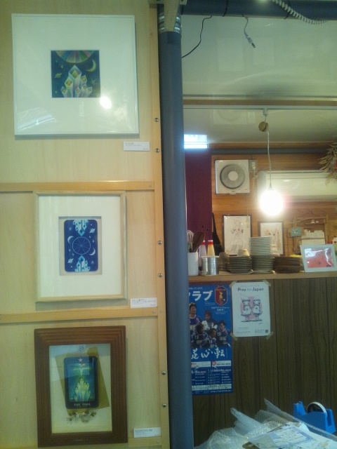 これはぜひ行きたい!! というわけで、5*SEASONさんの個展『ヘキサグラム』展を観に、 ならまちにある「藝育カフェ sankaku」さんへ。 ヾ(*´∀`)ノ♪ 『ヘキサグラム』展は、 以前、5*SEASONさんが発表された『タロット☆ニージュ区物語』の第2章なのです。 新宿で催された『タロット☆ニージュ区物語』の第1章にも観にいきました。 そのときの日記はこちら↓ http://gohsuke.blog.shinobi.jp/Entry/2/ こちらの壁には新作の絵、4点が飾られていました。 この感じいい!!やっぱり、ステキ。 やさしくて、やわらかくて、 私のからだじゅうに、そして心の奥のほうまで、 うまく言葉にはできない、なにかが沁みわたっていくのです!! すごく好きです。(*≧∇≦)/ その4つの絵をバックに、写真を1枚。 左から、 ブンちゃん(Bunjirohさん)、ヤギちゃん(5*SEASONさん)、タコちゃん(私) 『タロット☆ニージュ区物語』の第1章の絵たちも飾ってありましたー。 作品を背にして写真を1枚。 今回、『ヘキサグラム』展に行くにあたって、 以前GETしたタロットカードを、またもう一度見直してみました。 そうそう、 『タロット☆ニージュ区物語』の第1章を観にいったときには、 「吊られた人」 この絵が一番気になる感じでした。 自分のなかで、気になる絵がそのときとは別のものになっているのかな? と思ったのですが、 私はいまもこの絵が一番気になるようです。 ふむふむ。 「吊られた人」このカードに込められた意味は、 停止状態 身動きがとれない スランプ 価値観の逆転 です。 22枚ある、このタロットカードは、 私の大好きなお店、 東京・代官山にあるアートラッシュのオンラインショップで購入しました。 私のCD(『withG』)も置いてくれていました。 アルバムの全ての絵とデザインは5*SEASONさん。 いっしょに作品をつくれることになって、つくってもらえて、 ホントとっても嬉しいです。(v^-^v)♪ 入り口の前で写真を1枚。 左から、 しくるくんとブンちゃんと私。 「藝育カフェ sankaku」さんは、 5*SEASONさんの個展『ヘキサグラム』展の終了と同時に、 「もちいどの 夢CUBE」から卒業されて、 ご近所の、しもみかどへお引越しです。 sankakuさんをあとにして、 すてきな、猫カフェ「寧估庵(ねこあん)」さんへ、 (つづく) 今日もブログを読んでくれてありがとう。 PR |